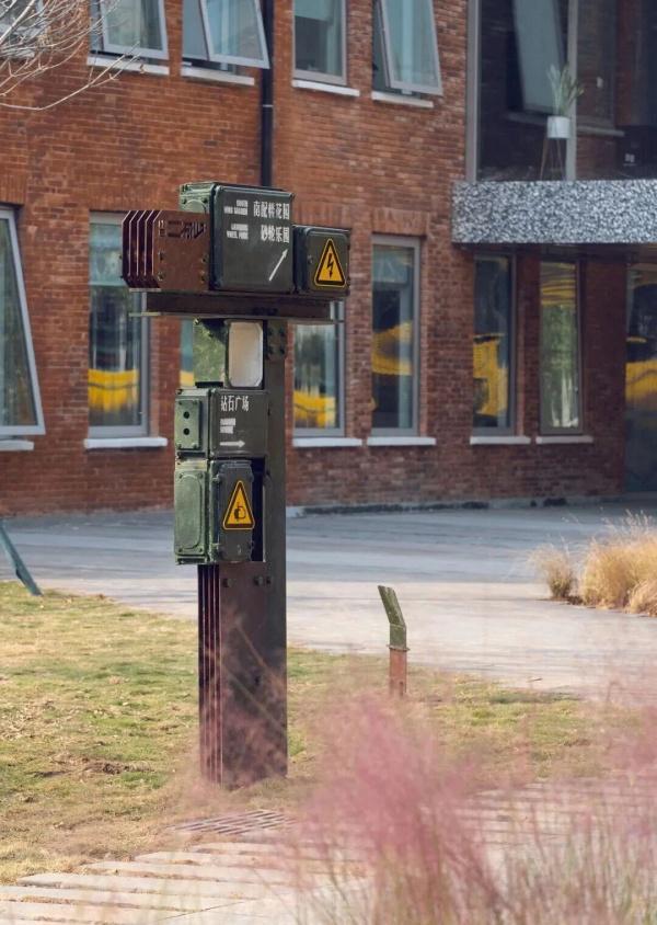 这张设计的时候就很注意细节,红配绿也一点不扎眼,红色就是耐候钢做的,绿的应该是金属板打磨外面喷的仿真铜锈漆,这组标识设计得很耐看,符合我对优秀户外标识的想象。